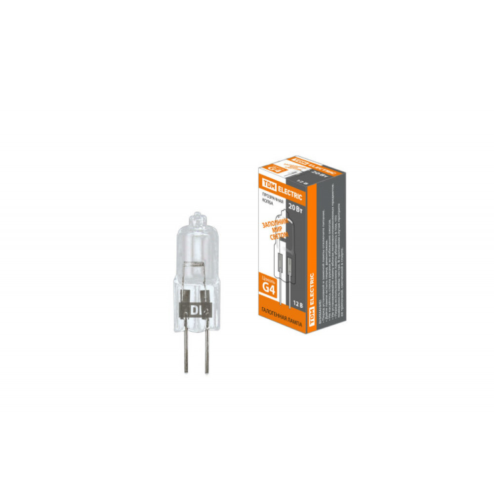 Лампа капсульная галогенная JC - 20Вт - 12В - G4 прозрачная SQ0341-0046, Лампа галогенная