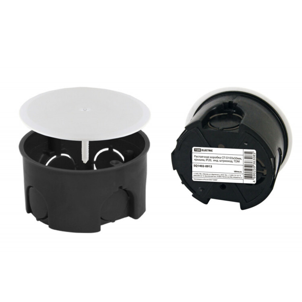 Описание Распаячная коробка СП D103х50мм, крышка, IP20, инд. штрихкод, SQ1402-0913