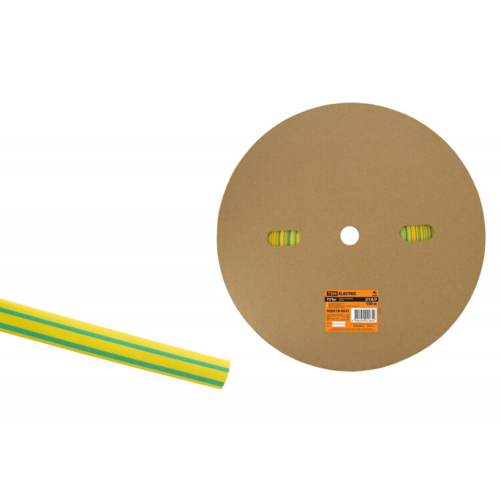 Термоусаживаемая трубка ТУТнг 14/7 желто-зеленая (100 м/ролл) SQ0518-0031, Изделие термоусаживаемое