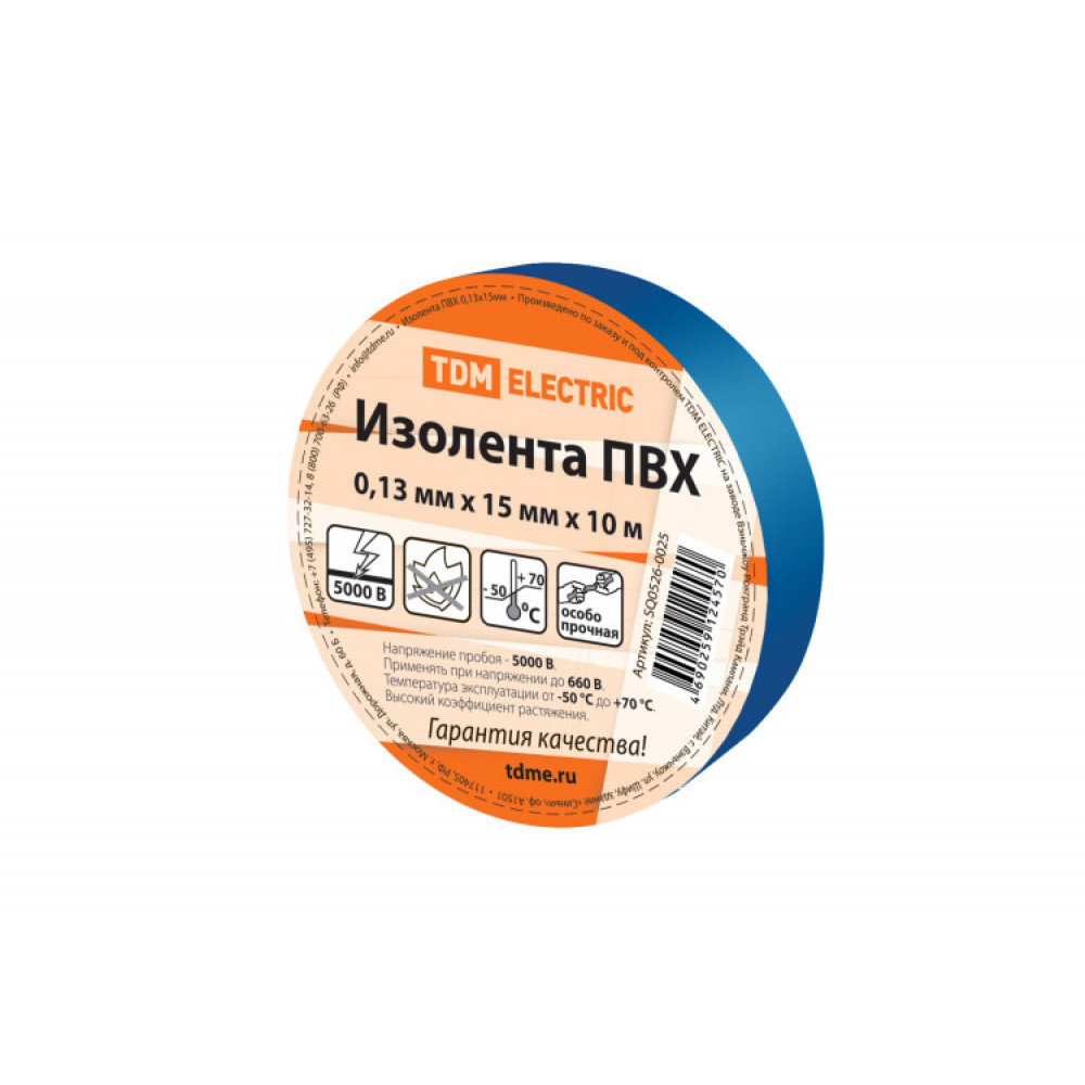 Описание Изолента ПВХ 0,13*15мм Синяя 10м SQ0526-0025