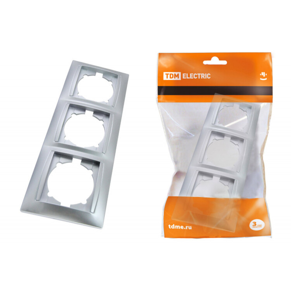 Рамка 3-х постовая вертикальная серебр. металлик "Лама" SQ1815-0234, Аксессуар для скрытого монтажа