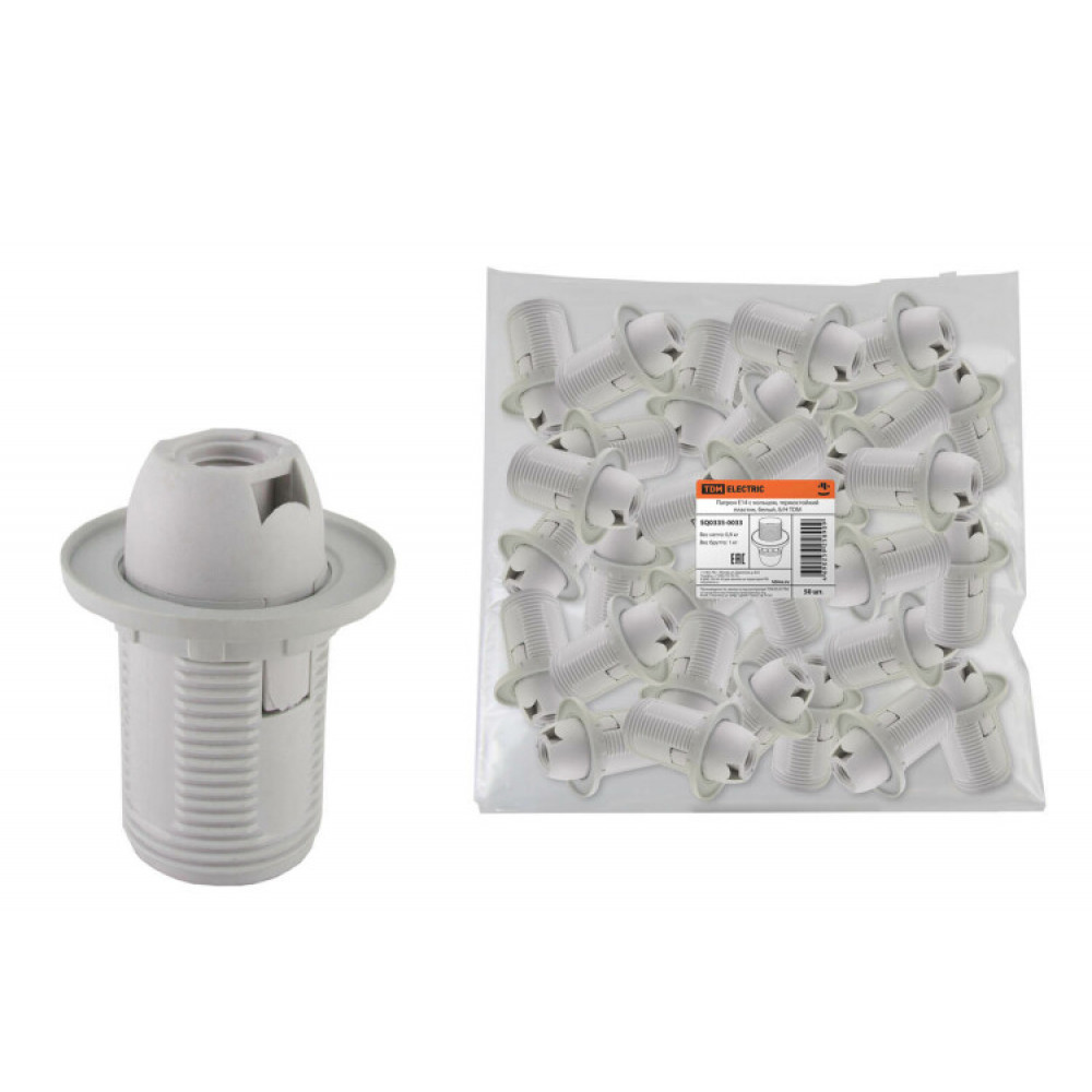 Описание Патрон Е14 с кольцом, термостойкий пластик, белый, Б/Н SQ0335-0033