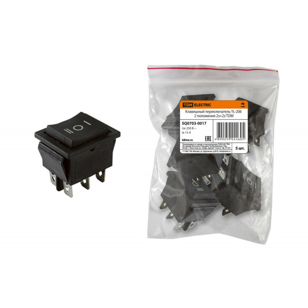 Клавишный переключатель YL-206 черный 3 положения 2з+2з SQ0703-0017, Изделие электроустановочное