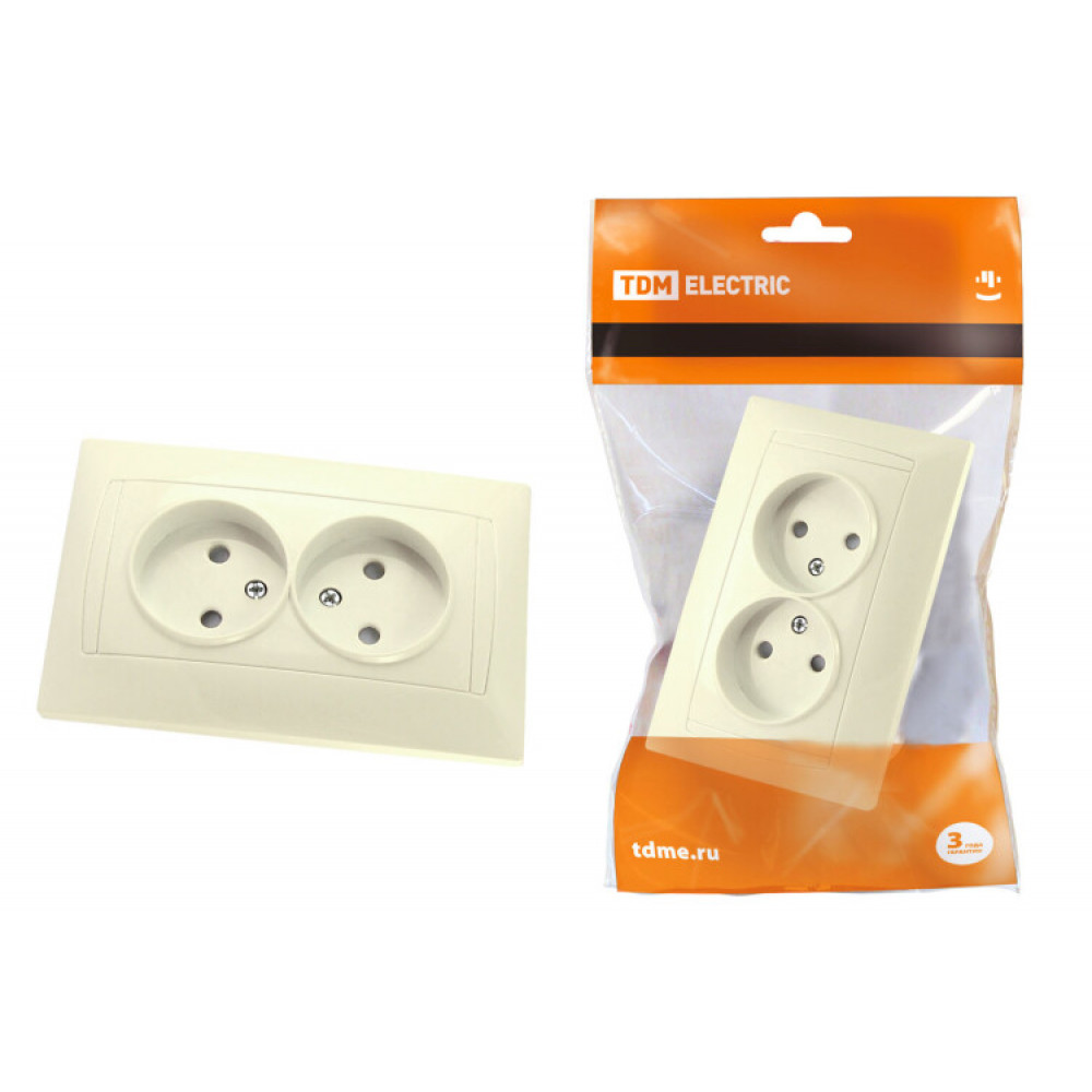 Розетка двойная 2П 10А 250В с защ. шт. сл. кость "Лама" SQ1815-0112, Розетка скрытого монтажа
