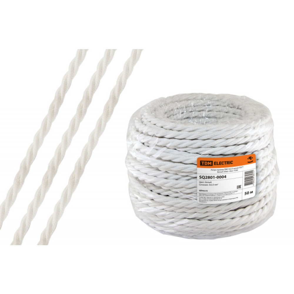 Ретро провод ПВО 3х2,5 витой ГОСТ белый (50м) "Эко" SQ2801-0004, Кабель и провод силовой для стационарной прокладки