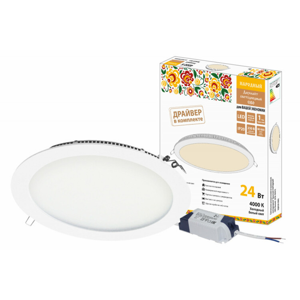 Доставка Светильник ультратонкий встраиваемый светодиодный "Даунлайт НАРОДНЫЙ" СВО (белый) 24 Вт 4000К SQ0329-0082