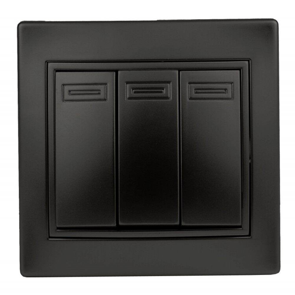1-106-05 Выключатель тройной, 10А-250В, IP20, СУ, Plano, антрацит (10/200/2400) Б0044565, Выключатель и переключатель скрытого монтажа