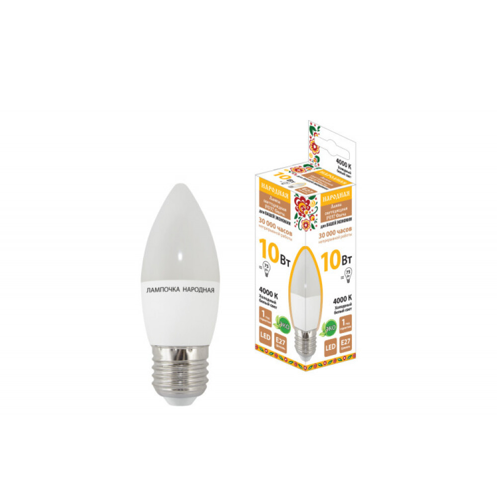 Описание Лампа светодиодная FС37-10Вт-230В-4000К–E27 Народная SQ0340-1595