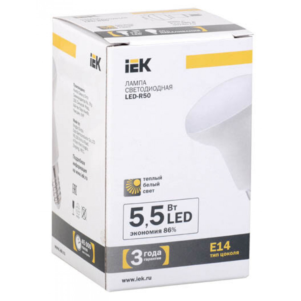 Лампа светодиодная R50 рефлектор 5,5 Вт 400 Лм 230 В 3000 К E14 нМ LL-R50-5-230-27-E14, Лампа светодиодная