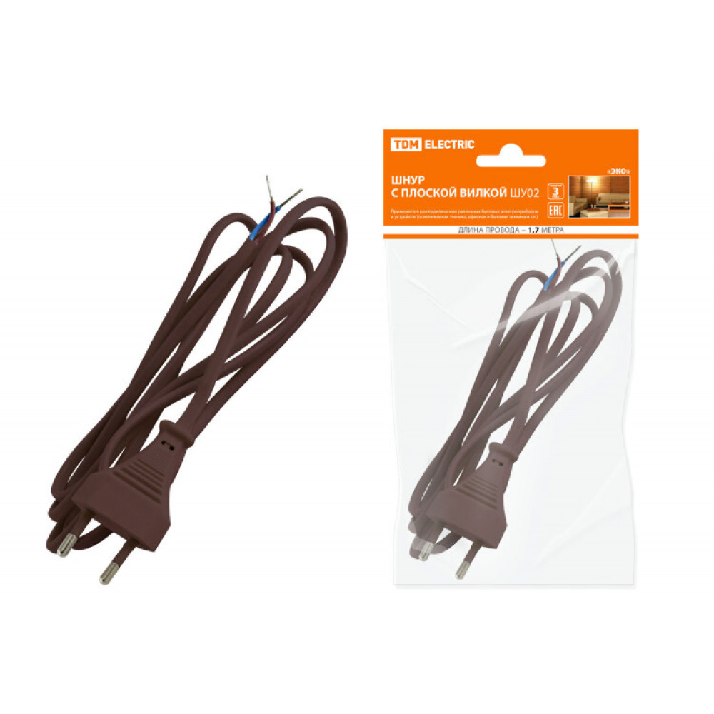 Описание Шнур с плоской вилкой ШУ02 ШВВП 2х0,75мм2 1,7 м. коричневый "ЭКО" SQ1305-0016