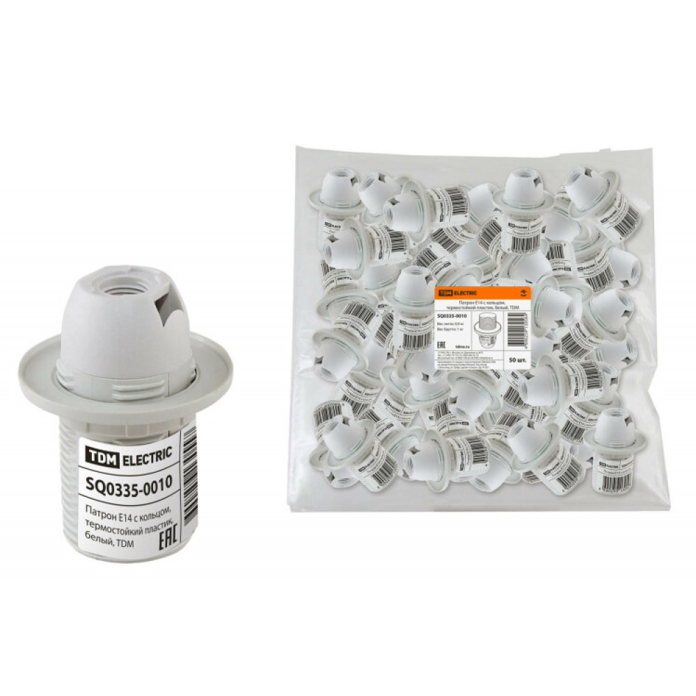 Патрон Е14 с кольцом, термостойкий пластик, белый, SQ0335-0010, Патрон, ламподержатель, стартер, переходник