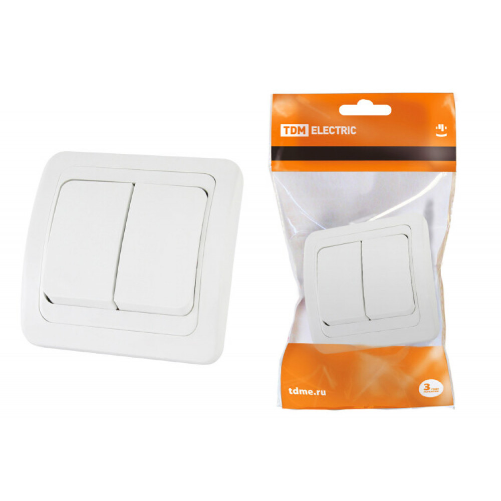 Описание Выключатель 2-кл. 10А белый "Валдай" SQ1804-0002