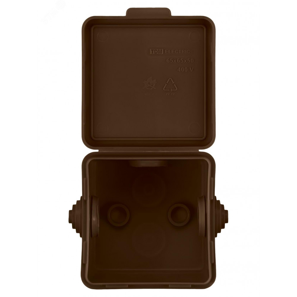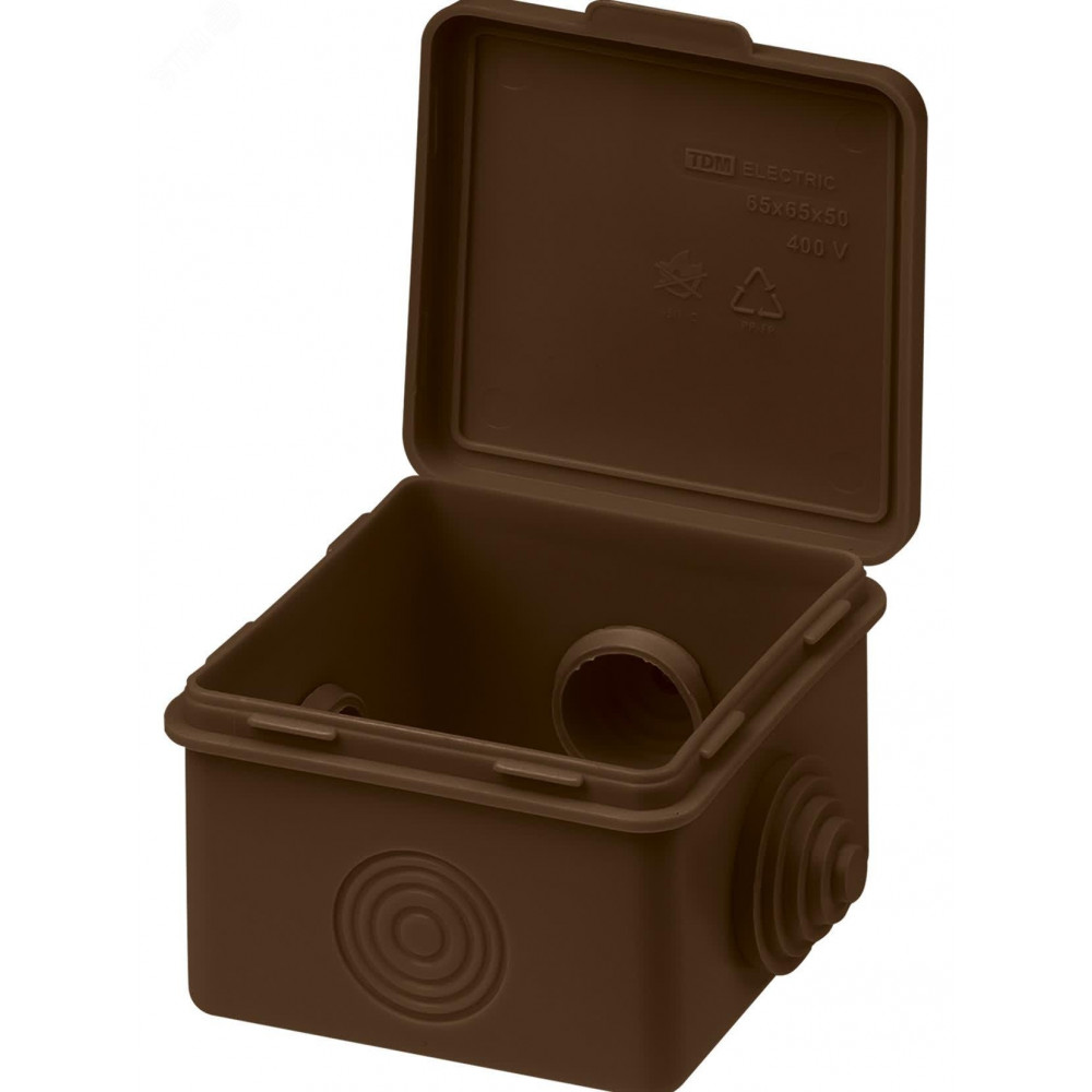 Распаячная коробка ОП 65х65х50мм, крышка, "ЭКО" (венге), IP54, 4вх. инд. штрихкод SQ1401-0611, Коробка распределительная