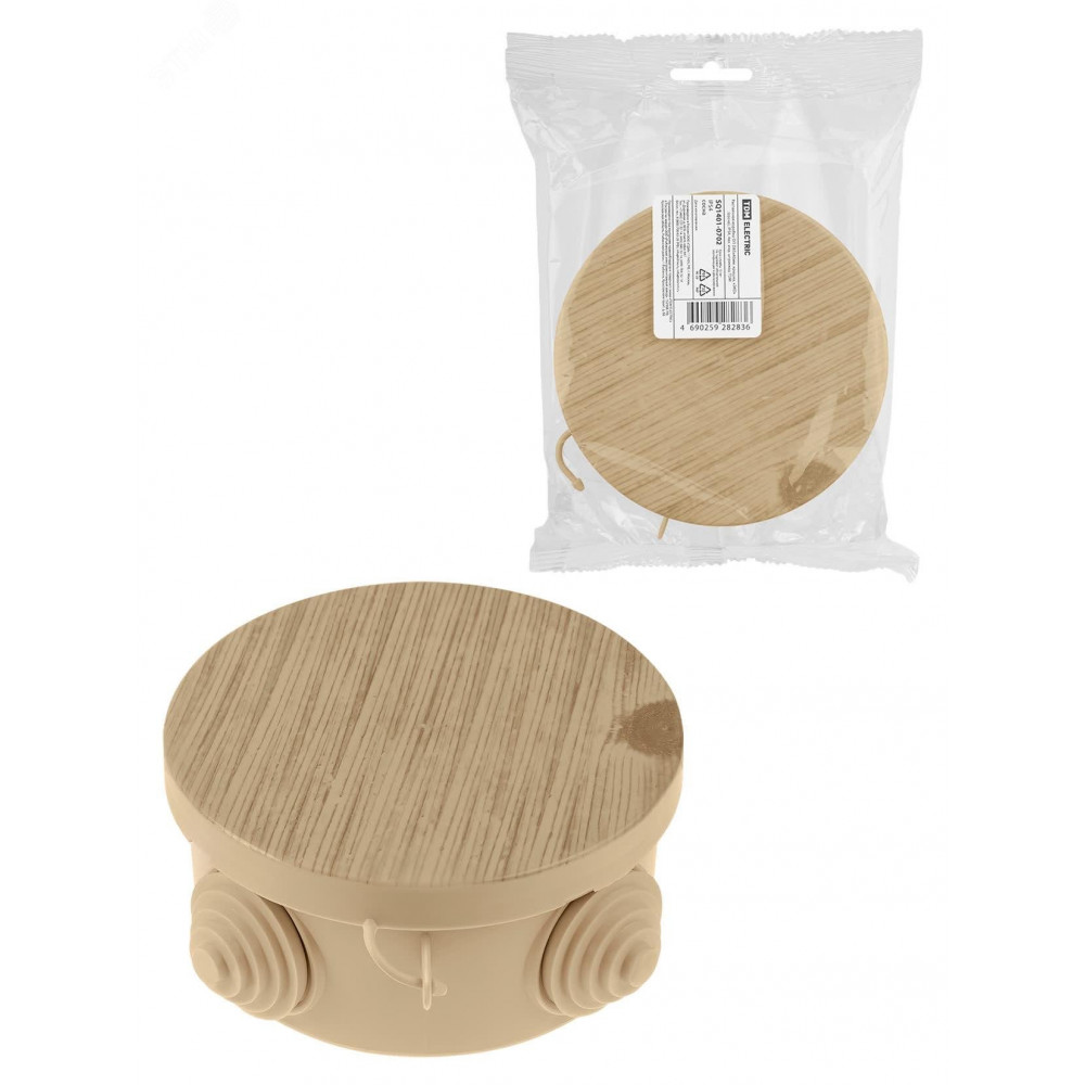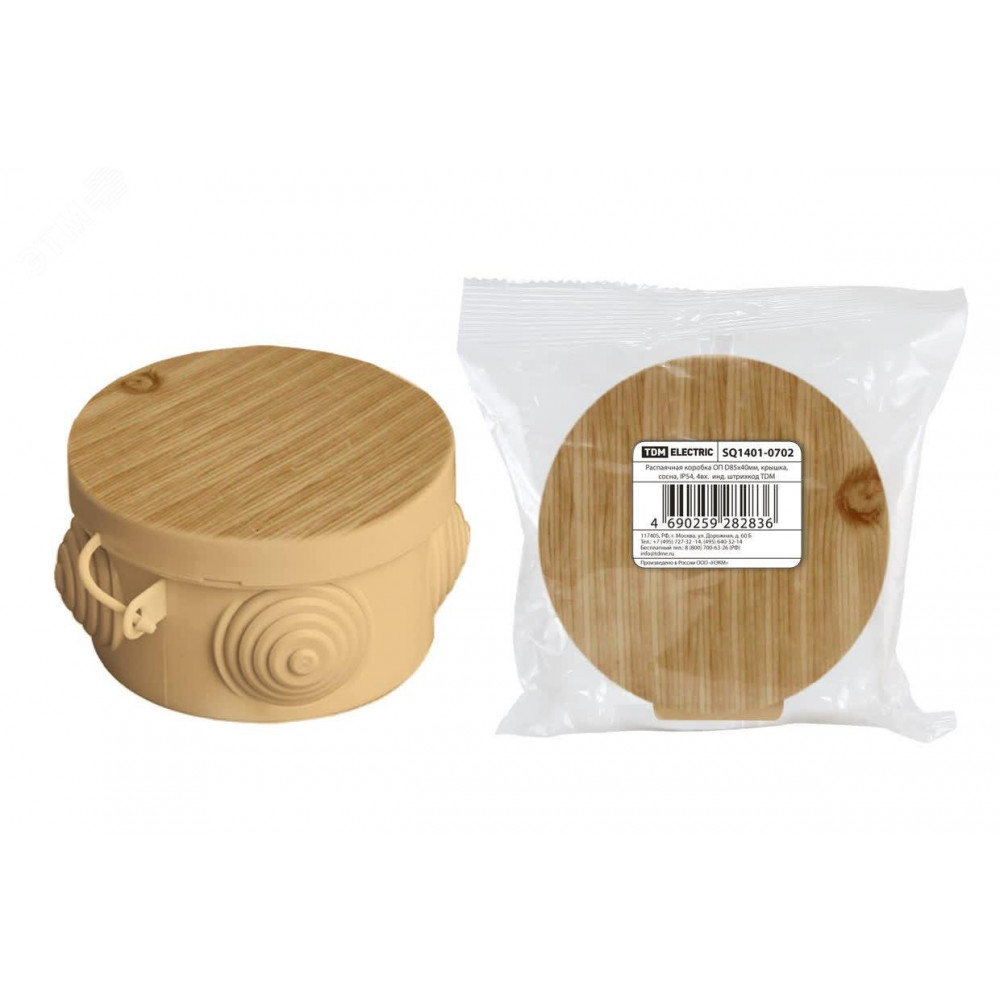 Распаячная коробка ОП D85х40мм, крышка, "ЭКО" (сосна), IP54, 4вх. инд. штрихкод SQ1401-0702, Коробка распределительная
