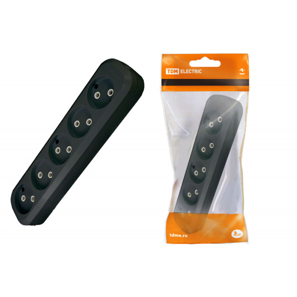Колодка розеточная 5 гнезд 2П б/з 10А 250В черная SQ1806-0134, Удлинитель, сетевой фильтр