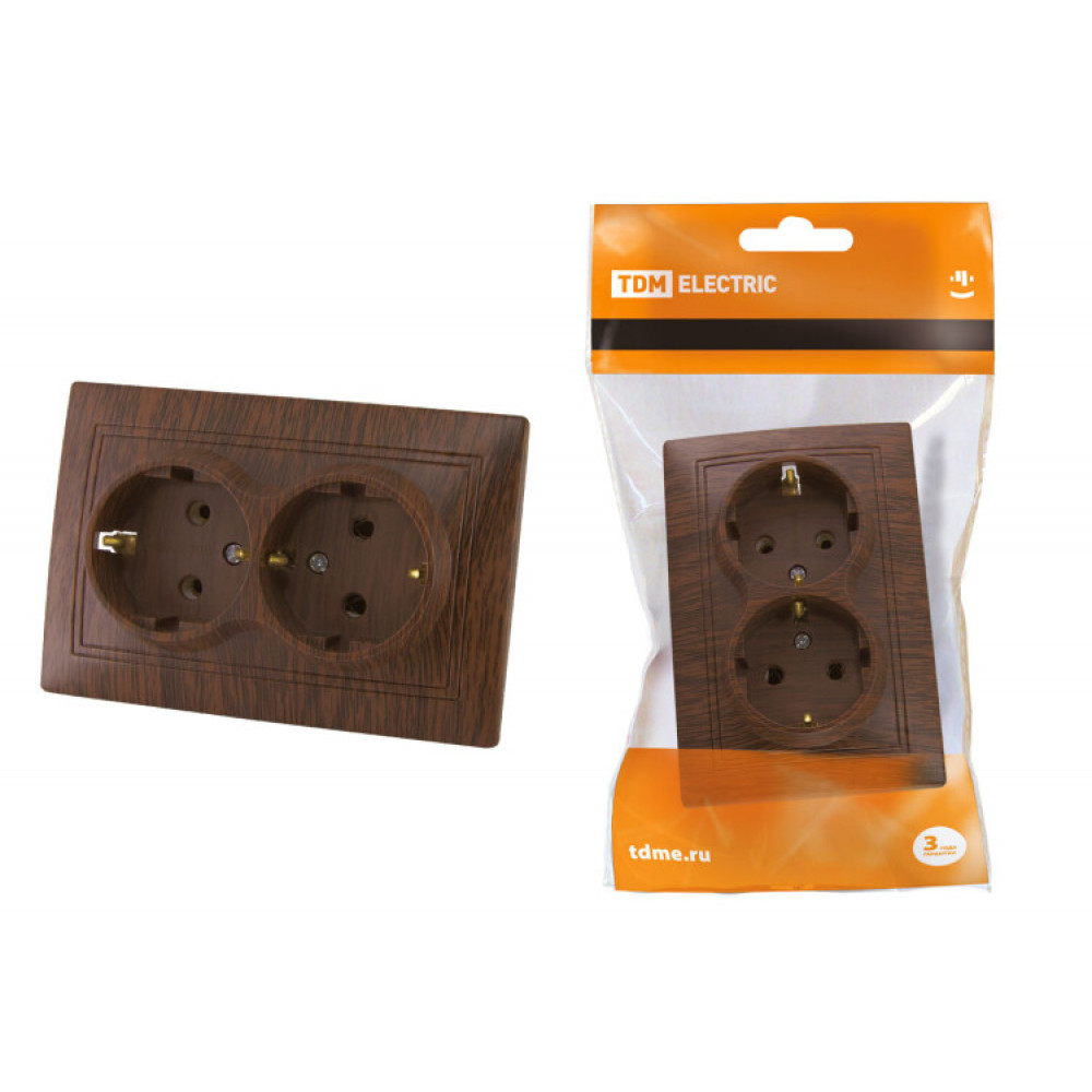 Доставка Розетка двойная 2П+З 16А 250В "ЭКО" (бук) "Таймыр" SQ1814-0314
