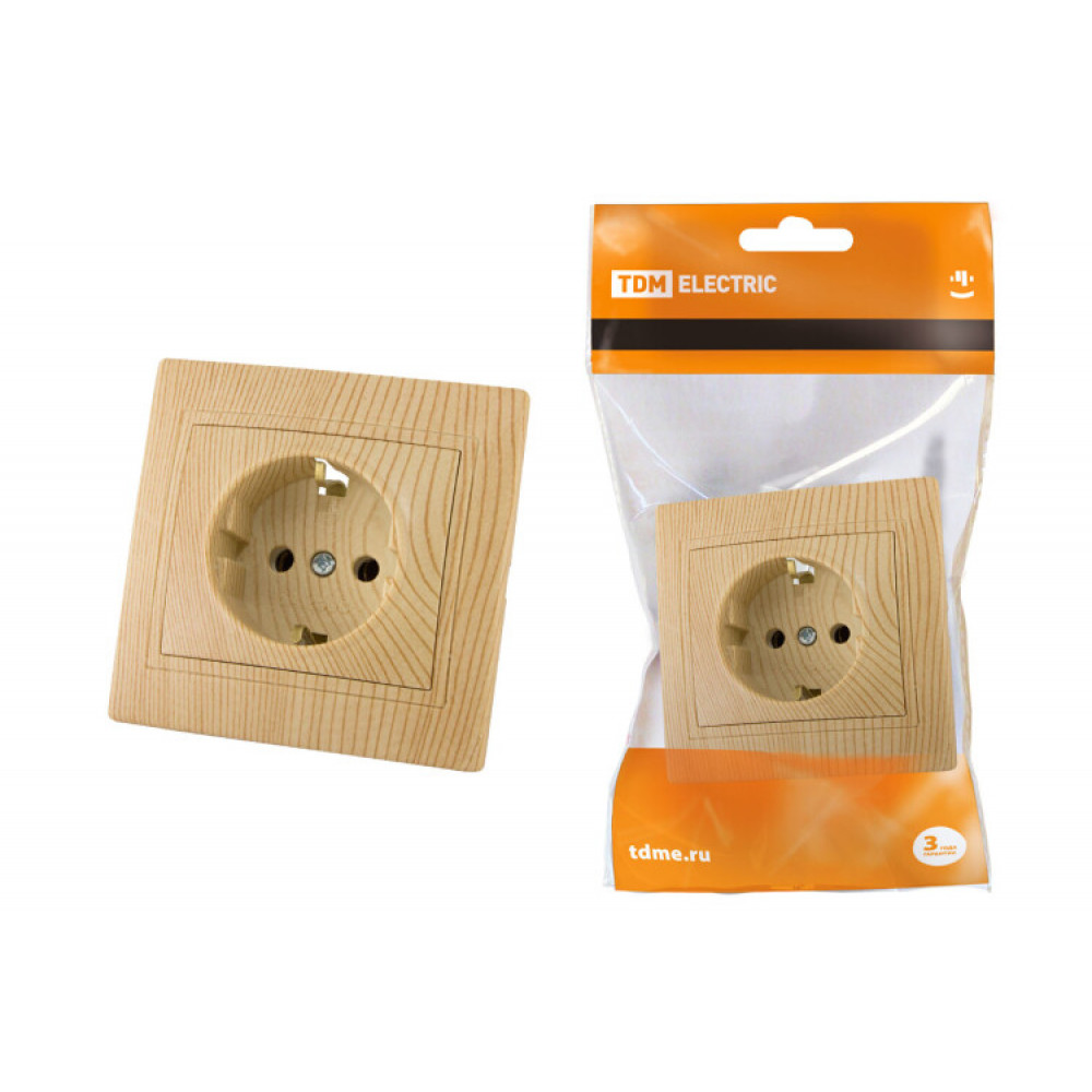 Розетка 2П+З 16А 250В "ЭКО" (сосна) "Таймыр" SQ1814-0212, Розетка скрытого монтажа