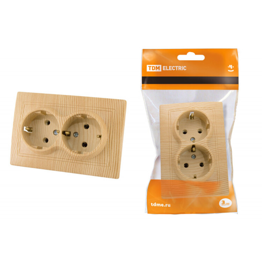 Доставка Розетка двойная 2П+З 16А 250В "ЭКО" (сосна) "Таймыр" SQ1814-0214