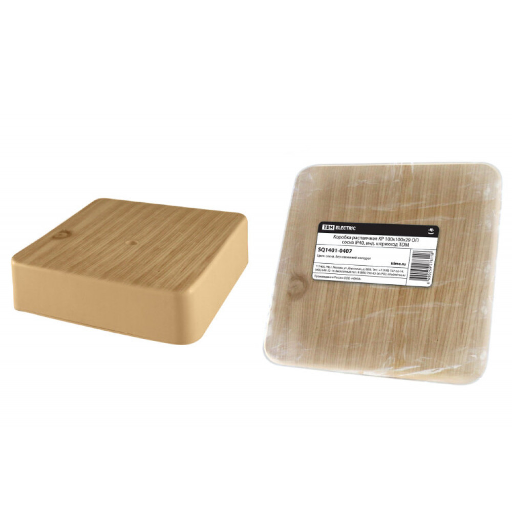 Коробка распаячная КР 100х100х29 ОП сосна IP40, инд. штрихкод SQ1401-0407, Коробка распределительная