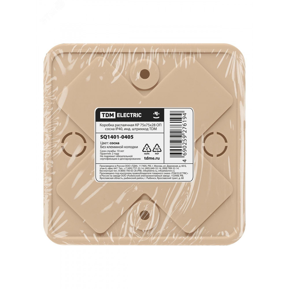 Коробка распаячная КР 75х75х28 ОП сосна IP40, инд. штрихкод SQ1401-0405, Коробка распределительная