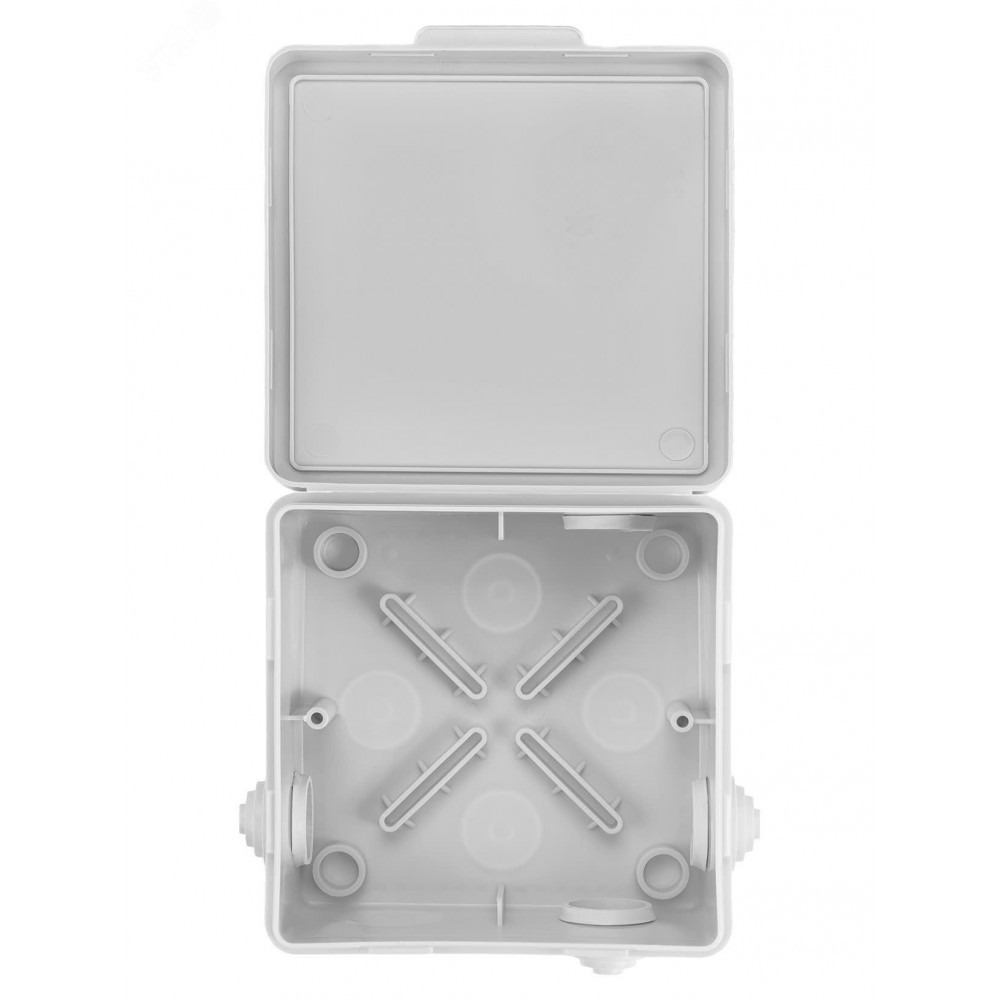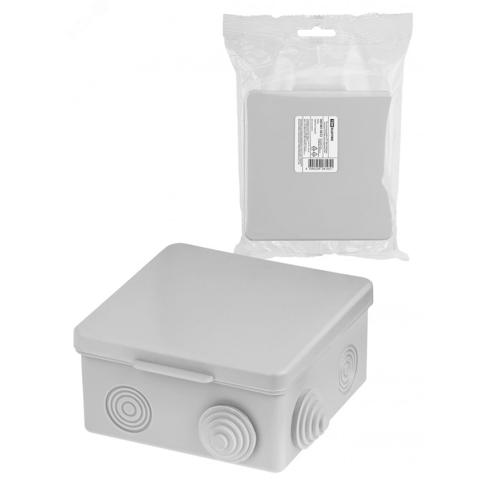 Описание Распаячная коробка ОП 100х100х55мм, крышка, IP54, 8вх. инд. штрихкод SQ1401-0513