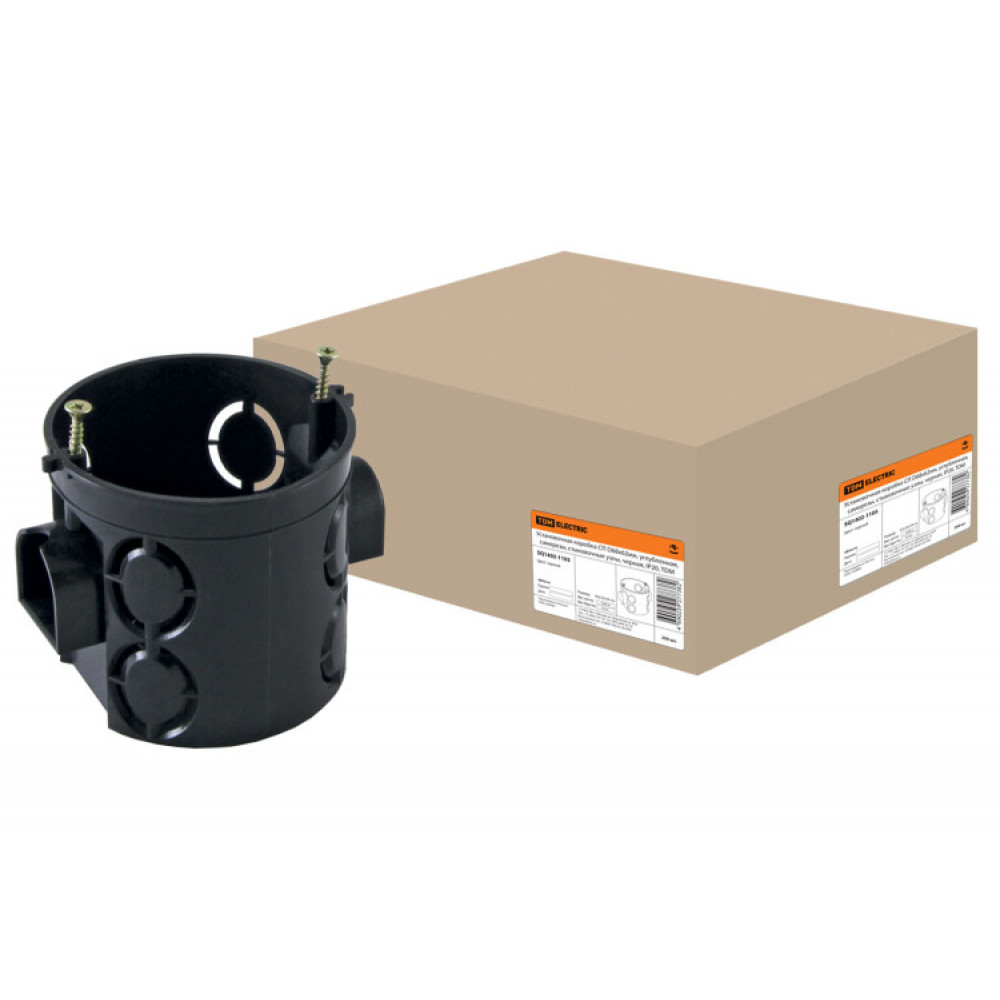 Установочная коробка СП D68х62мм, углубленная, саморезы, стыковочные узлы, черная, IP20, SQ1402-1105, Коробка распределительная