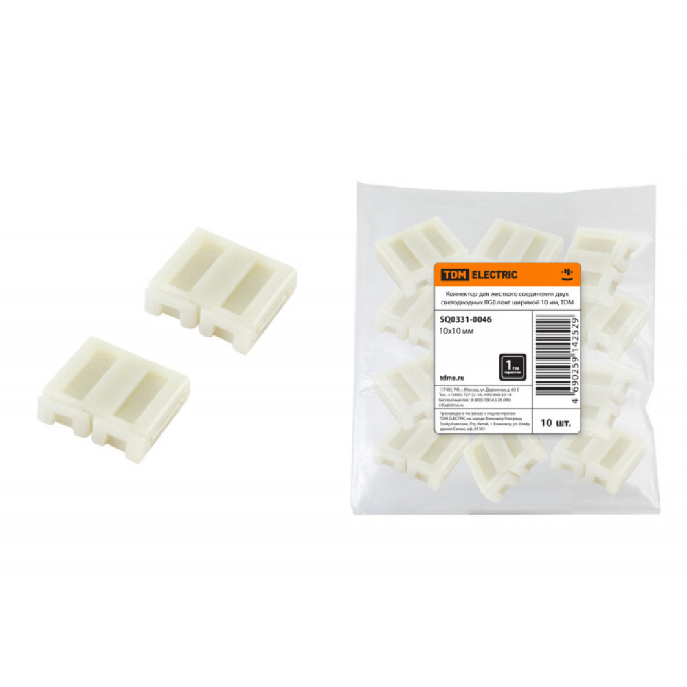 Описание Коннектор для жесткого соединения двух светодиодных RGB лент шириной 10 мм, TDM (кр.10шт)