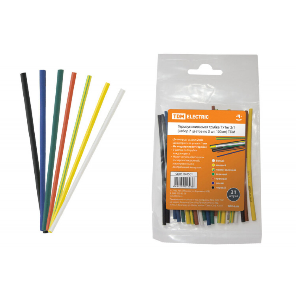 Термоусаживаемая трубка ТУТнг 2/1 набор (7 цветов по 3 шт. 100мм) SQ0518-0501, Изделие термоусаживаемое