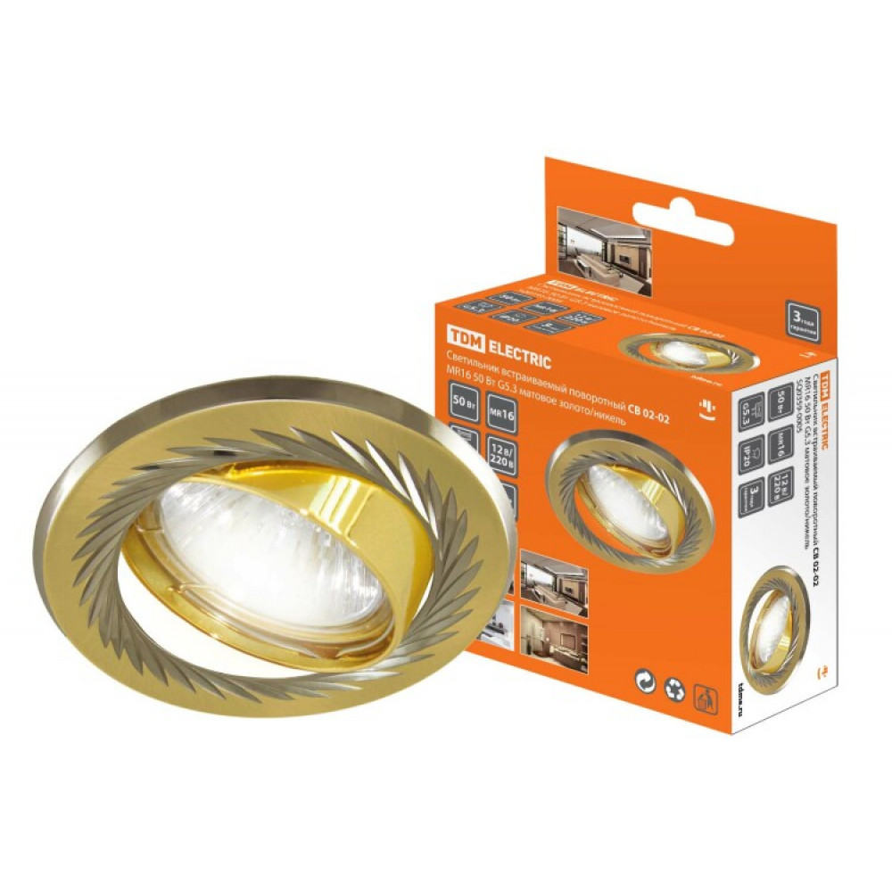 Описание Светильник встраиваемый поворотный СВ 02-02 MR16 50Вт G5.3 матовое золото/никель SQ0359-0005