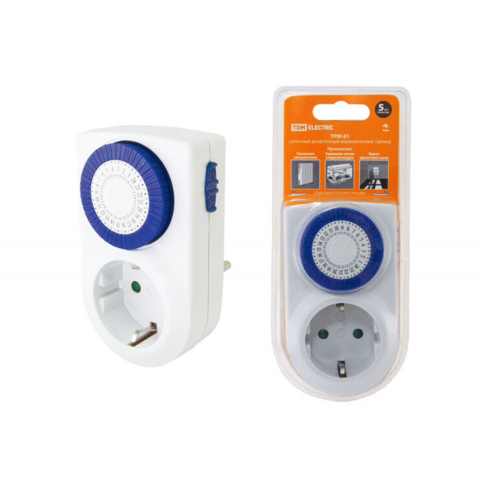 Описание Таймер розеточный ТРМ-01-30мин/24ч-16А (суточный) SQ1506-0001