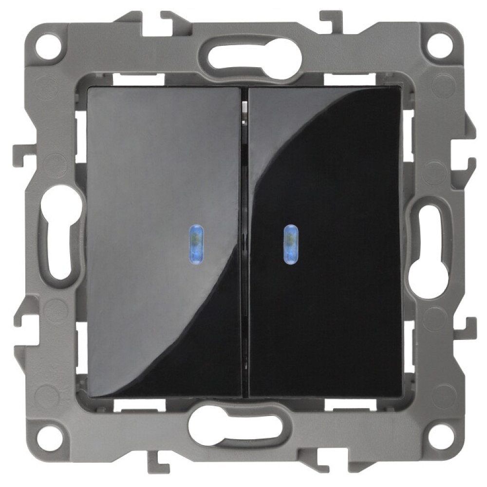 12-1105-06 Выключатель двойной с подсветкой, 10АХ-250В, IP20, 2, чёрный (10/100 Б0014662, Выключатель и переключатель скрытого монтажа