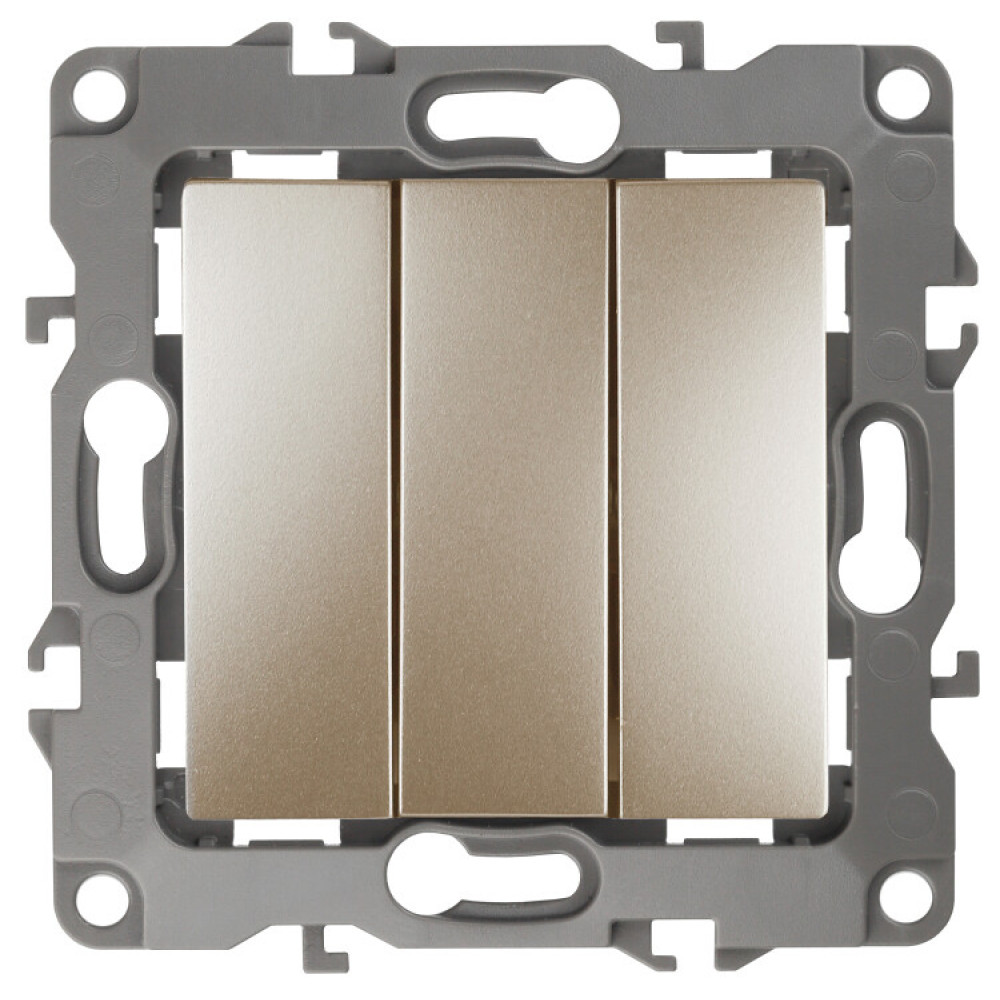 Описание 12-1107-04 Выключатель тройной, 10АХ-250В, IP20, 2, шампань (10/100/3200) Б0014672