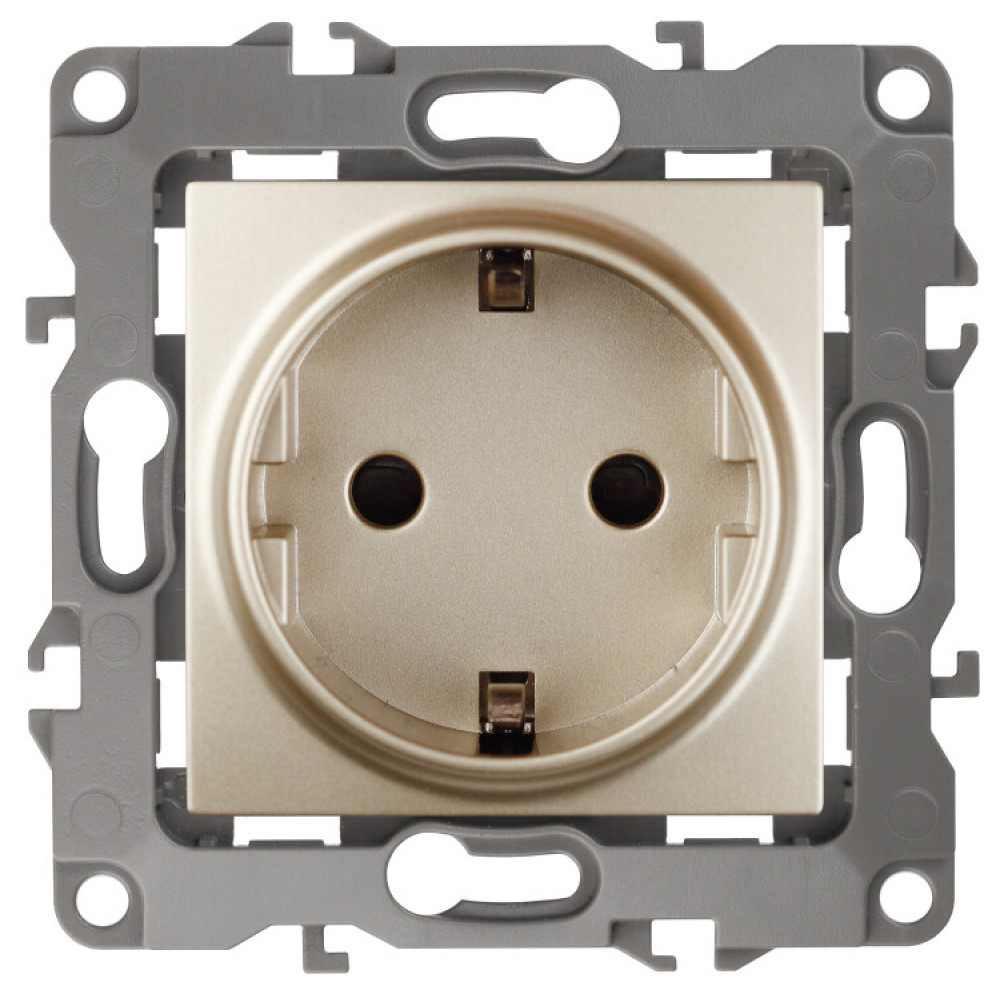 Описание 12-2102-04 Розетка 2P+E Schuko со шторками, 16A-250В, IP20, 2, шампань (10/100/2800) Б0014690