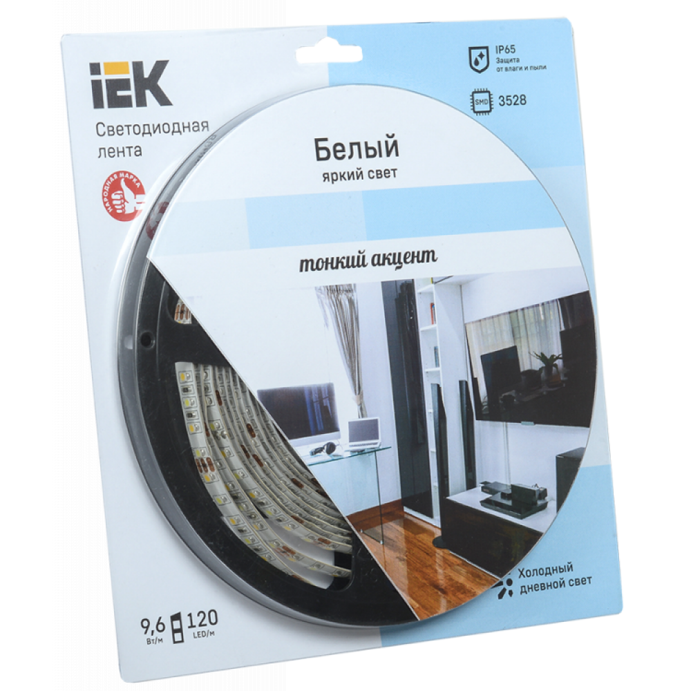 Лента LED 5м блистер LSR-3528W120-9.6-IP65-12V eco нМ LSR1-2-120-65-1-05, Лента светодиодная одноцветная белая