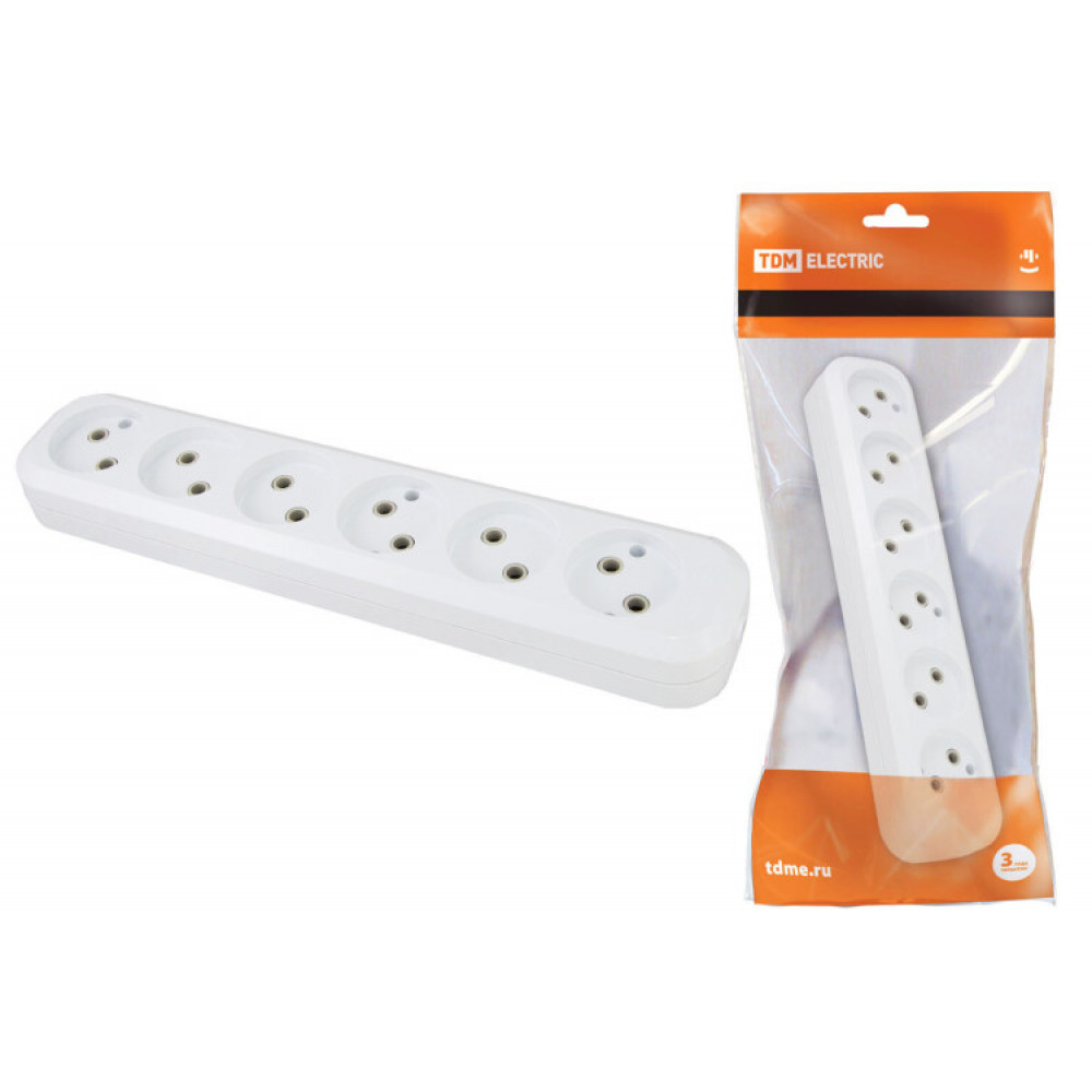 Колодка розеточная 6 гнезд 2П б/з 10А 250В белая SQ1806-0038, Удлинитель, сетевой фильтр