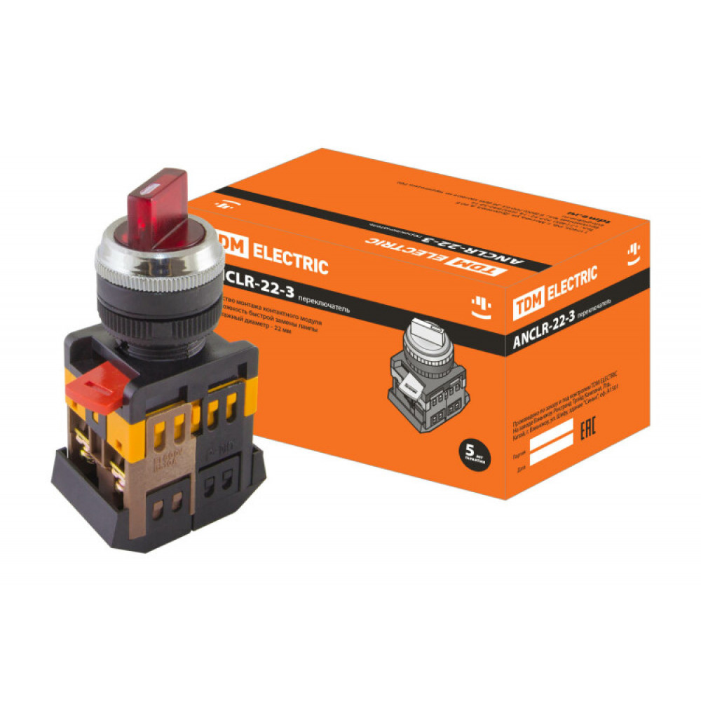 Доставка Переключатель АNСLR-22-3 на 3 фикс.полож.красный неон/230В I-O 1з+1р SQ0703-0004