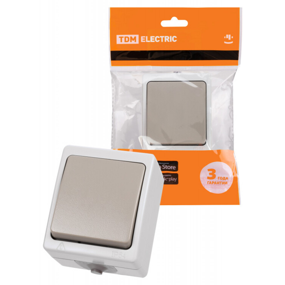 Описание Переключатель на 2 направления 1-кл. открытой установки IP54 10А серый "Вуокса" SQ1803-0003