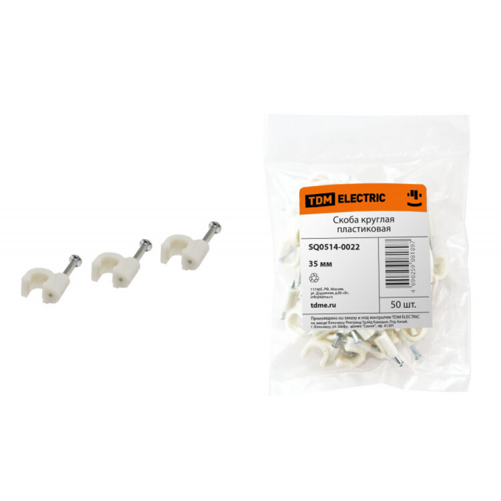 Описание Скоба 35мм круглая пластиковая (белая) (50шт) SQ0514-0022