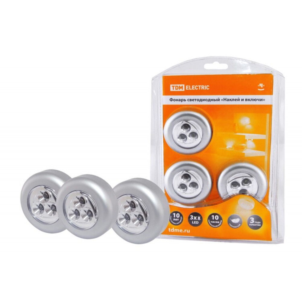 Фонарь светодиодный, "Наклей и включи", 3 светодиода 9 лм/Вт, бат. 3*AAА SQ0350-0026