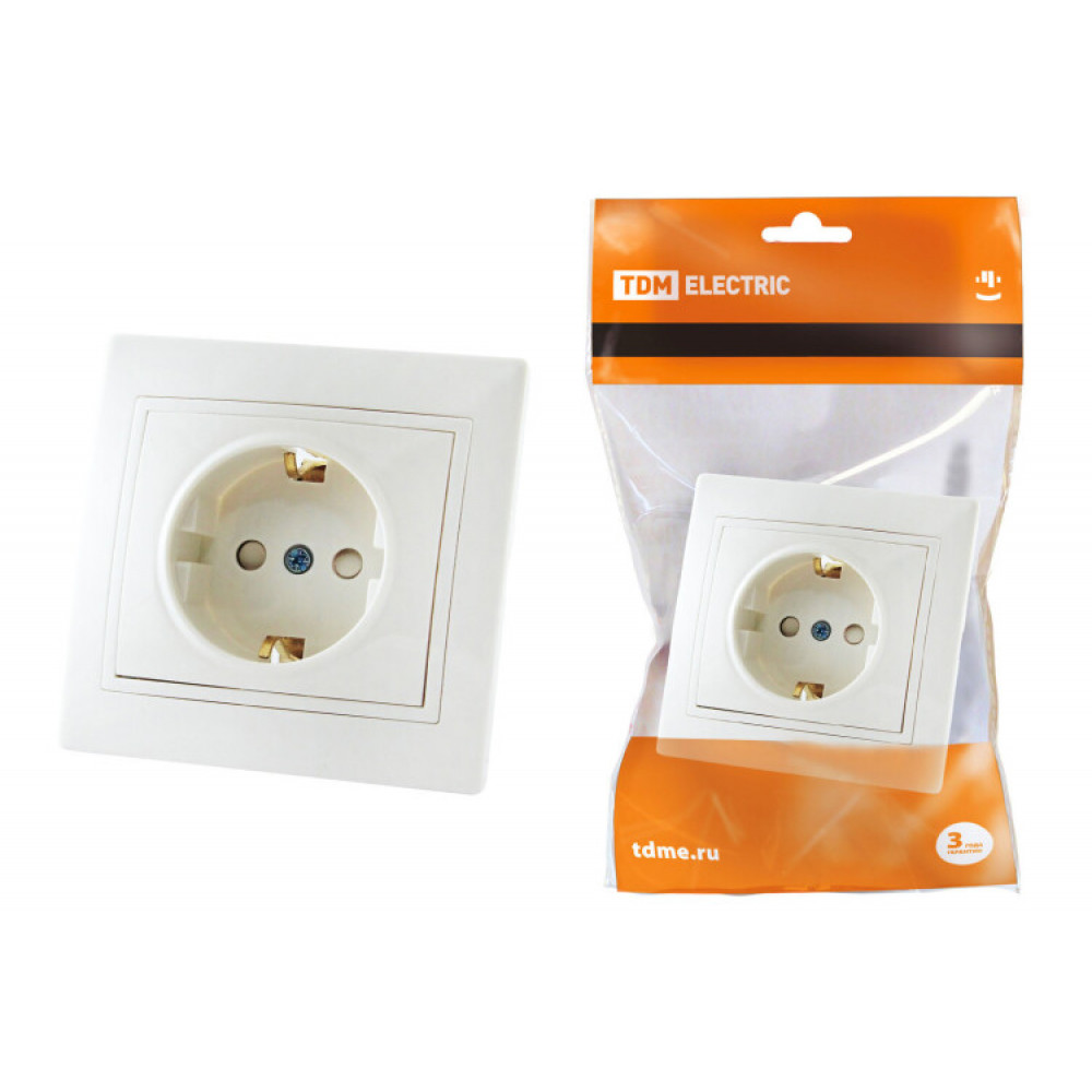 Описание Розетка 2П+З с защ. шт. 16А 250В белая "Таймыр" SQ1814-0016
