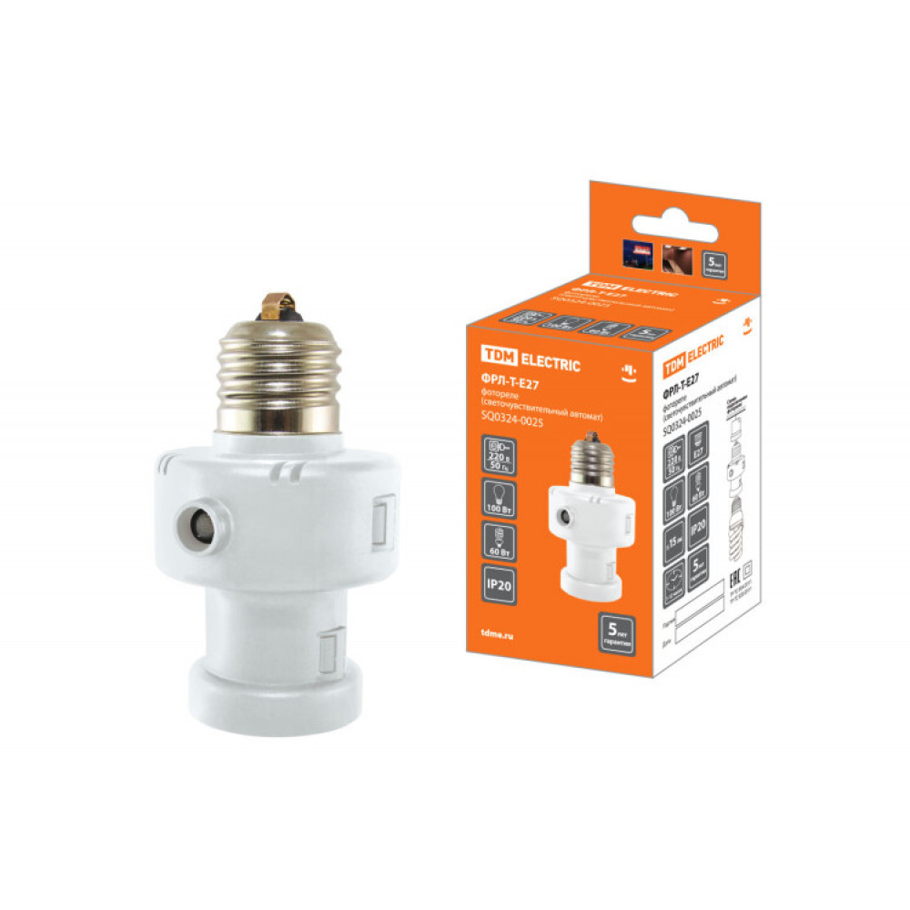 Описание Фотореле ФРЛ-Т-Е27 15лк 100Вт c тайм. SQ0324-0025