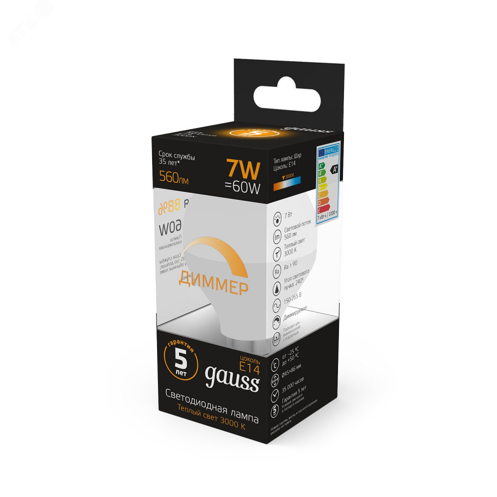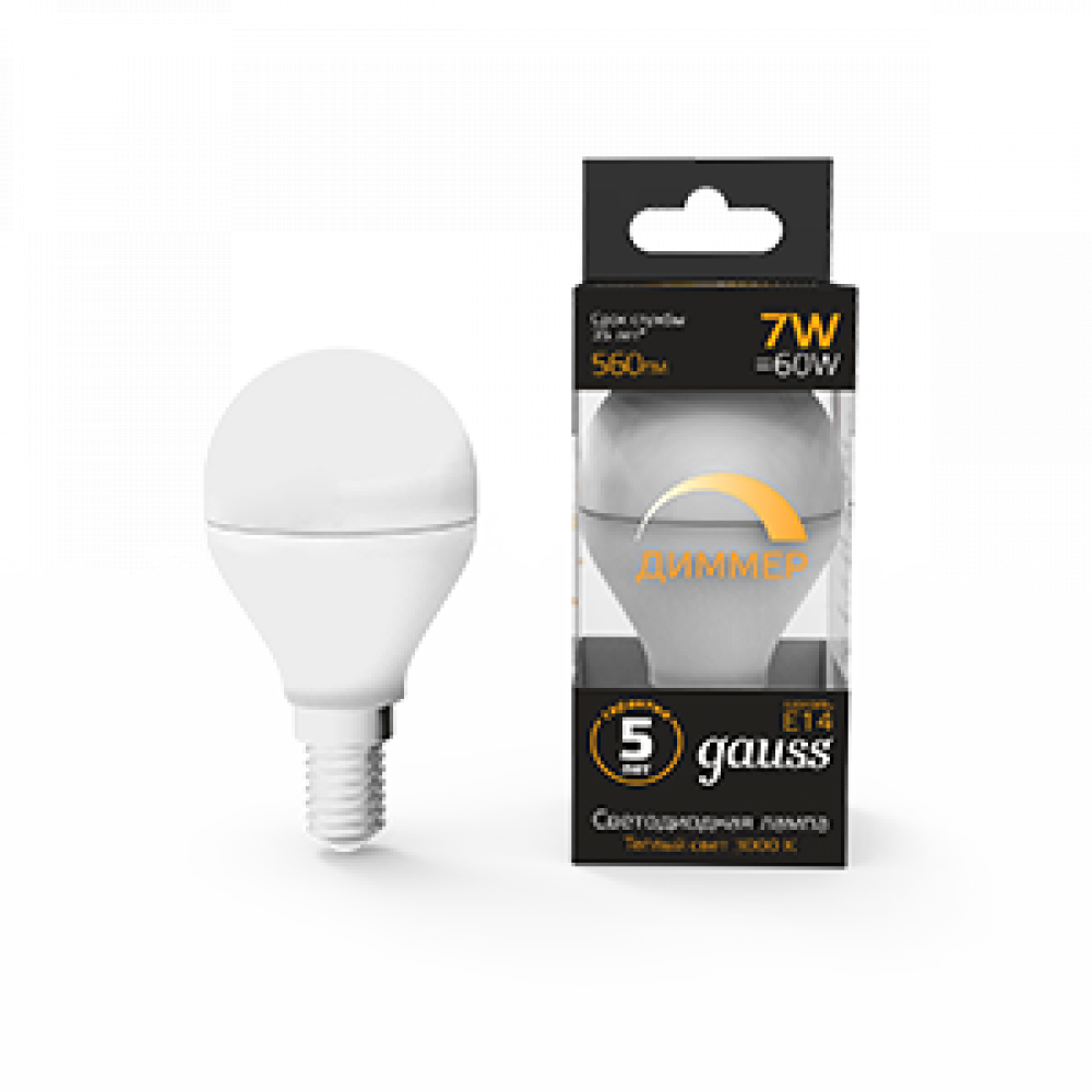 Лампа LED Globe-dim E14 7W 3000К диммируемая 1/10/100 105101107-D, Лампа светодиодная