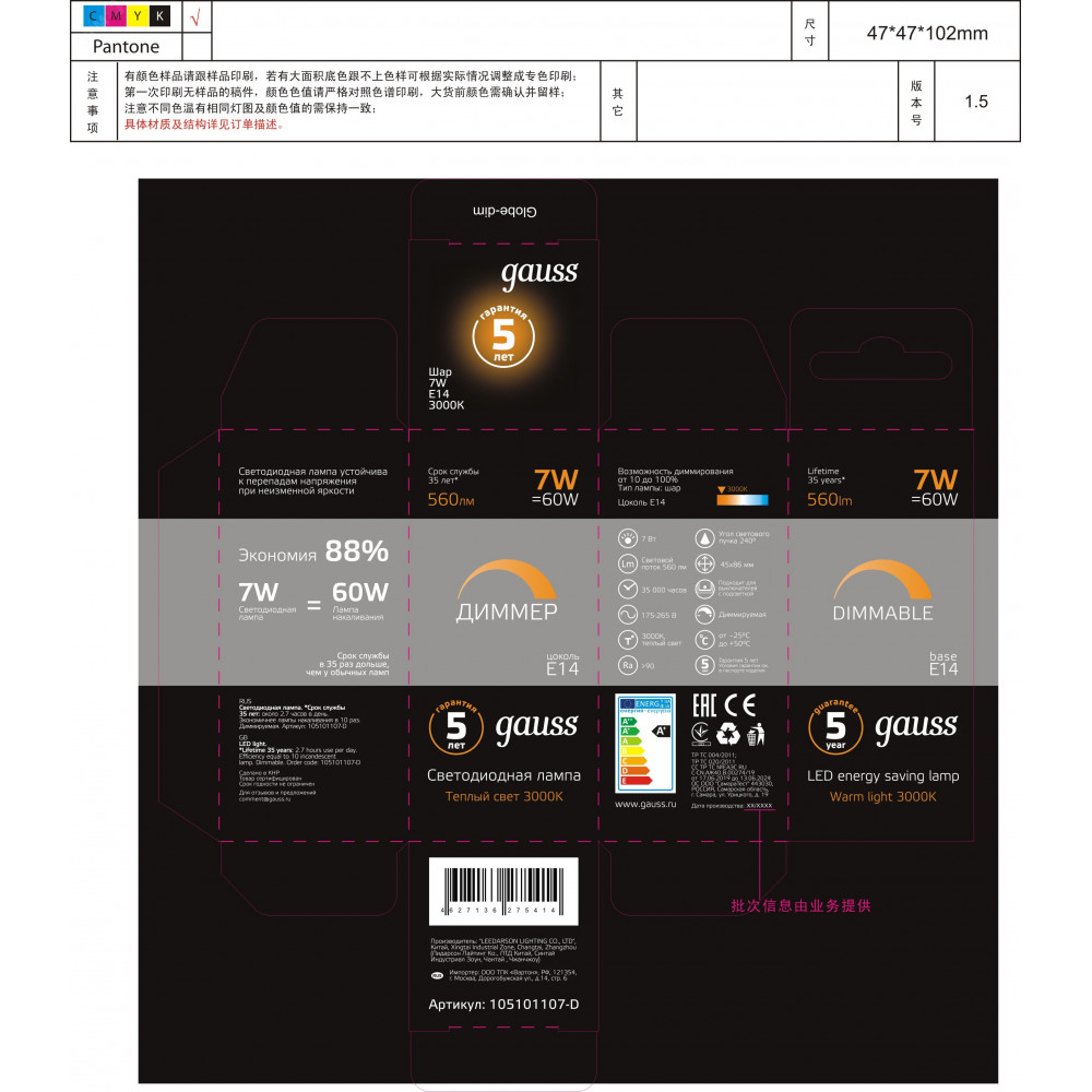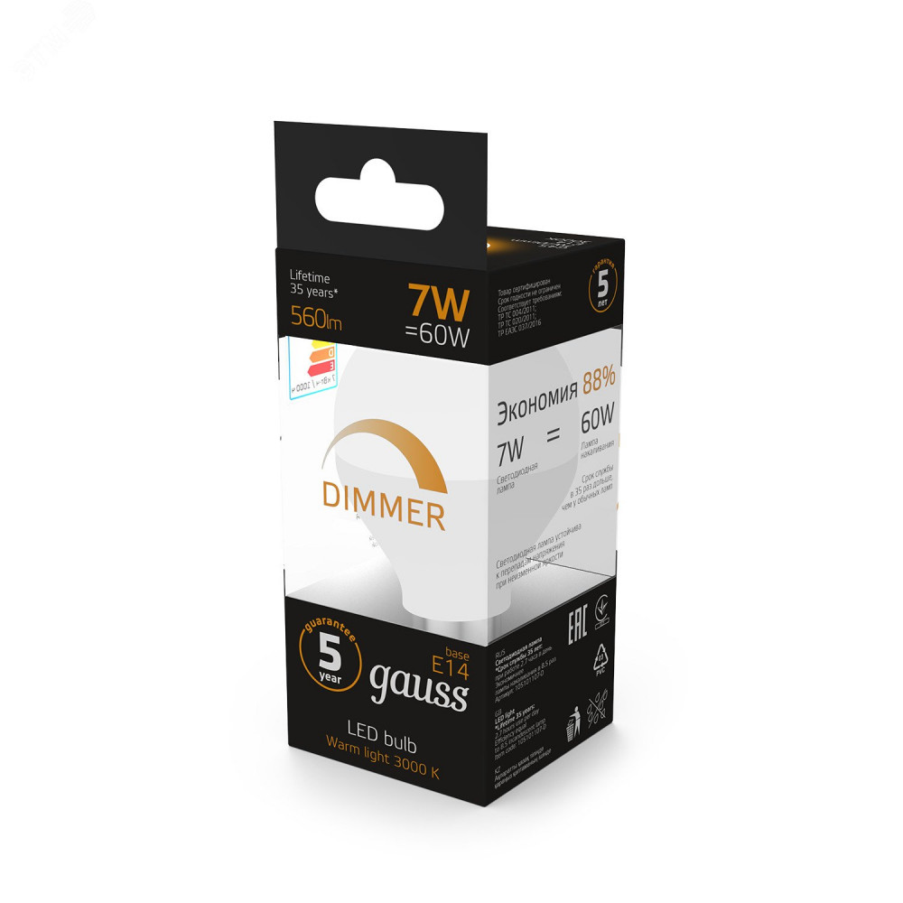 Описание Лампа LED Globe-dim E14 7W 3000К диммируемая 1/10/100 105101107-D