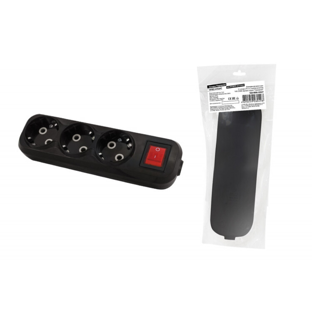Колодка розеточная 3 гнезда 2П+3 c выключателем 16А 250В черная серии " Народная" SQ1806-0427, Удлинитель, сетевой фильтр