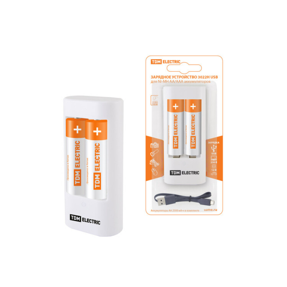 Описание Зарядное устройство 3022Н (300 mA 2 слота АА/ААА 1 кан.+2xAA2500 USB) SQ1702-0103