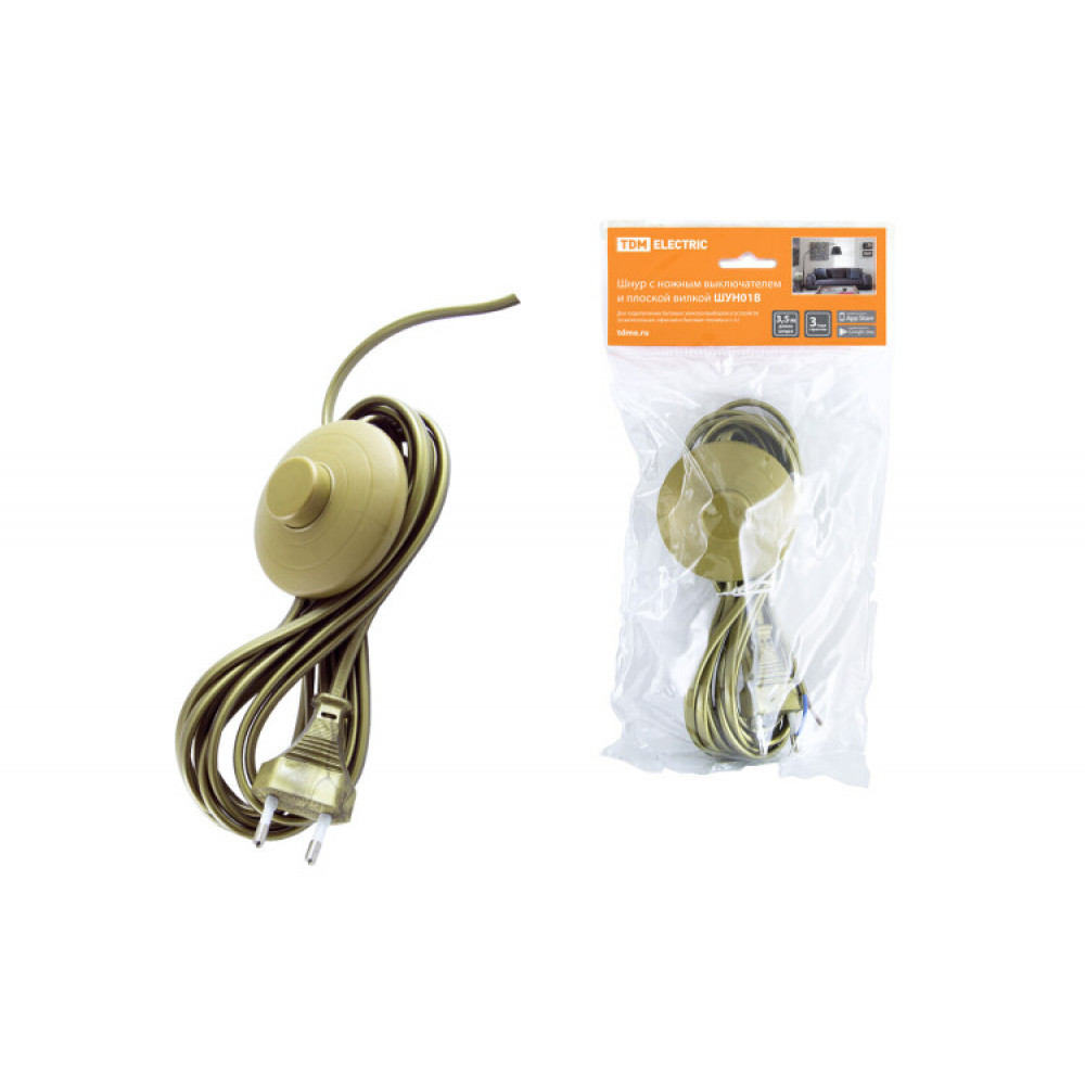 Описание Шнур с ножным выключателем и плоской вилкой ШУН01В ШВВП 2х0,75мм2 3,5м. бронза SQ1305-0063