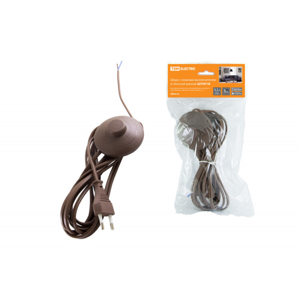 Описание Шнур с ножным выключателем и плоской вилкой ШУН01В ШВВП 2х0,75мм2 3,5м. коричневый "ЭКО" SQ1305-0066