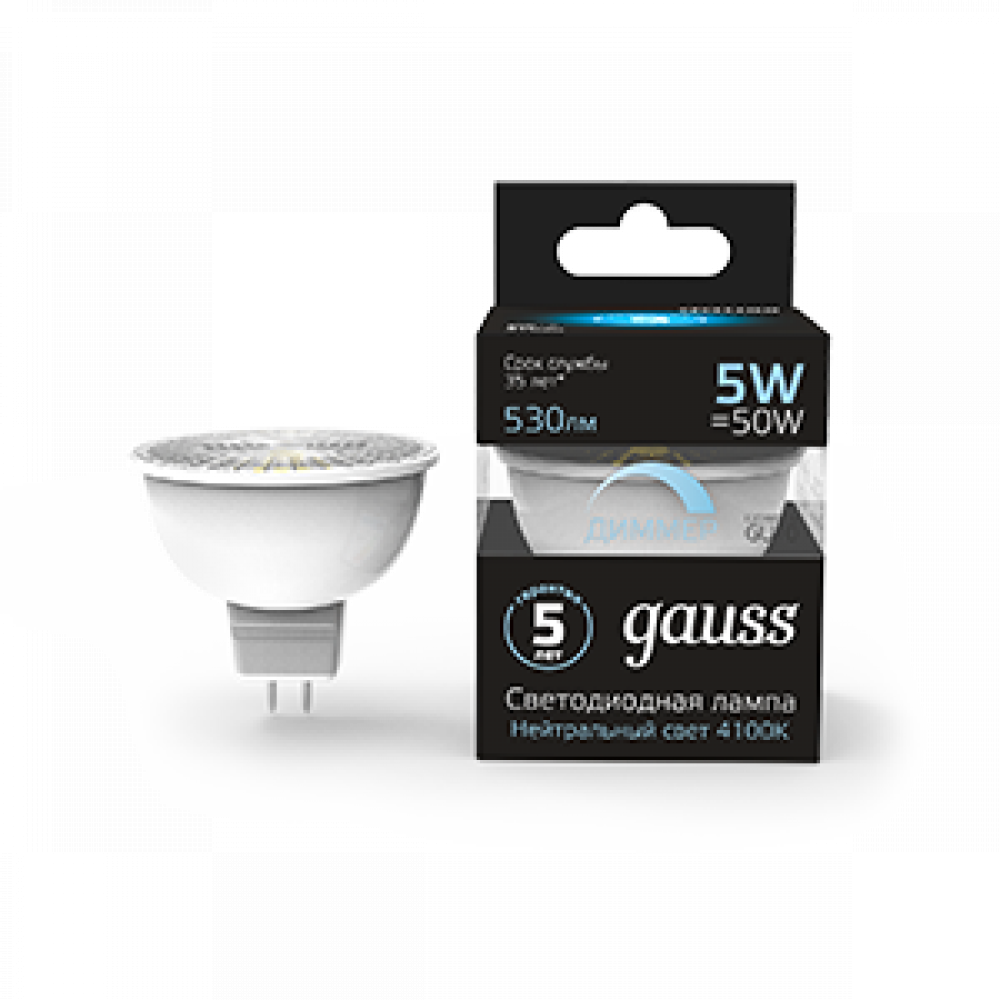 Описание Лампа LED MR16 GU10-dim 5W 4100K диммируемая 1/10/100 101506205-D