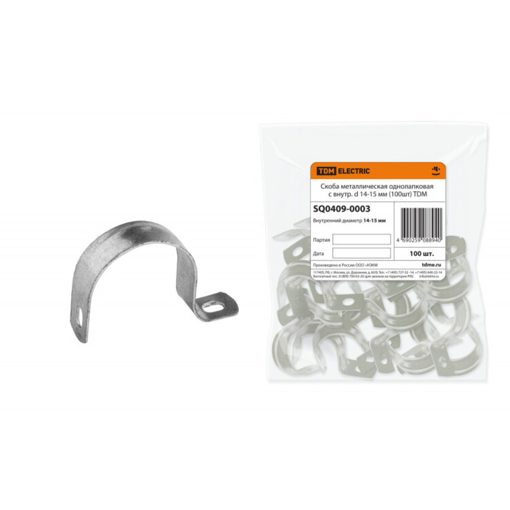Описание Скоба металлическая однолапковая с внутр. d 14-15 мм (100шт) SQ0409-0003