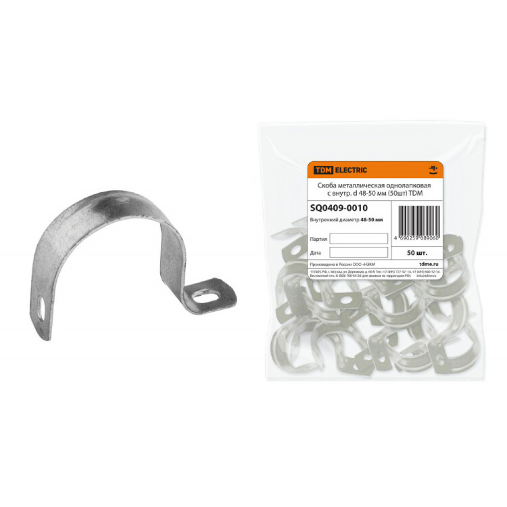 Описание Скоба металлическая однолапковая с внутр. d 48-50 мм (50шт) SQ0409-0010